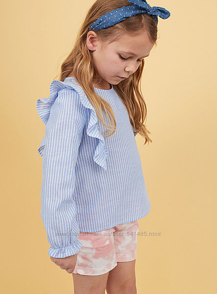 Шорты из комплекта 2 шт. из хлопковой ткани. Впереди боковые карманы, сзади прорезные карманы обманки, на поясе заложены складки. Застежка обманка на кнопке. В талии резинка, регулирующая объем. Продаются поштучно, бирка на одних. Из новой коллекции ведущего европейского бренда H&M.Размер в наличии: 5-6 лет, рост 116 см, цвета в наличии: розовый, хаки