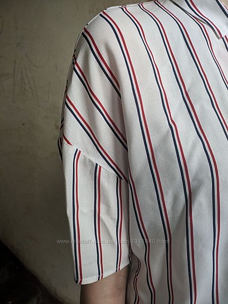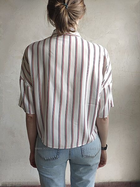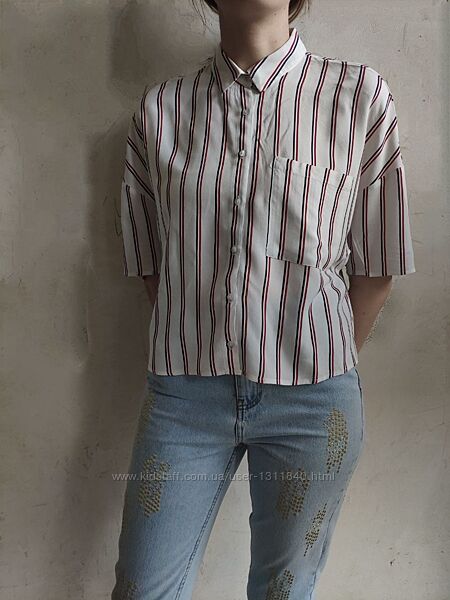 Подробное описание: Натуральна укорочена вільна сорочка в смужку, теніска, віскозна сорочка
