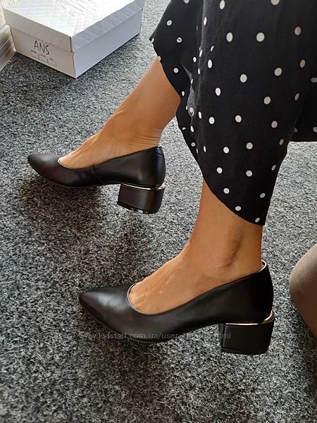 Новая коллекция Туфли лодочки чёрные кожаные на каблуке