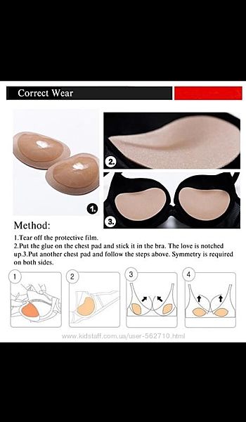 Вкладыши в бюстглальтер (купальник) с пуш-апом на липкой основе станут замечательным помощником женщинам , которые хотят увеличить грудь на 1-1,5 р-ра, также они хорошо подойдут женщинам с чувствительными сосками после родов, а также в послеоперационный период... Вкладыши очень приятные к телу, гладкие , на липкой основе (прилипают к бюстгальтеру и хорошо держаться). Многоразовые. Материал : хлопок и липкий силикон. Размер вкладышей 11 Х 8 см.