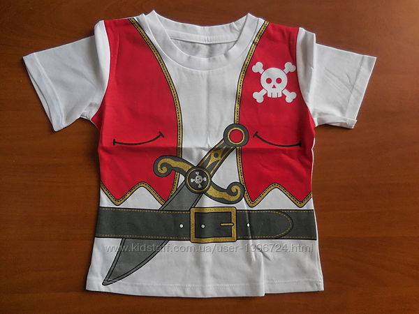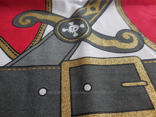 Футболка "Отважный пират" от Oriflame на мальчика . Указан возраст 2-3 года и рост 85-90 см. Длина от плеча 36 см., ширина в плечах 26 см., ширина под руками 30 см. ширина по низу 32 см., рукав от плеча 13,5 см. Ткань 35% хлопок, 65% полиэстер.