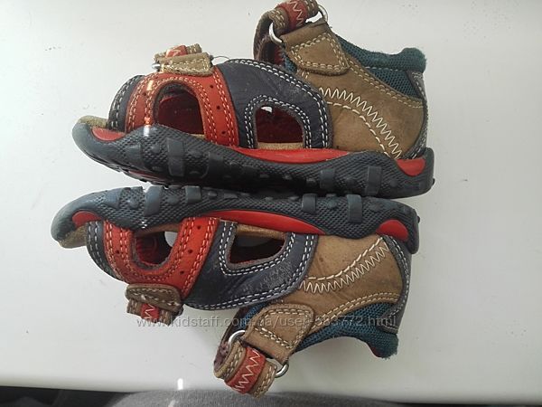 Кожаные босоножки Hush Puppies 22 размер. Крепкие, плотные, фирменные и качественные. Полностью кожаные. Твердый и высокий задник, что обязательно для маленьких ножек. Удобные и крепкие 2 липучки.Длина по стельке от края до края 14 см.