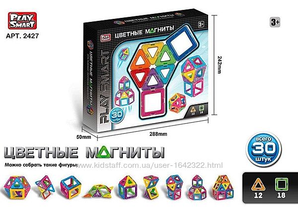 Подробное описание: Конструктор 2427 магнитный, 30 деталей