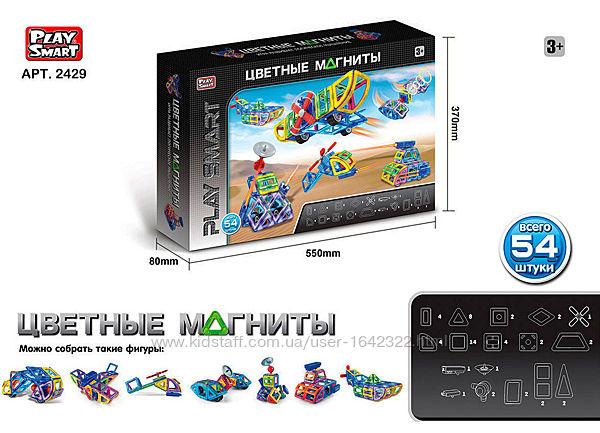 Подробное описание: Конструктор 2429 магнитный 54 детали
