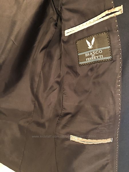 Темно синий классический костюм Brasco di Ferretti. Подростку 12-13 лет (прошу ориентироваться на замеры). Одет считанные разы. Отлично формирует строгий классический образ для образовательных учреждений любого типа. Великолепное качество, хороший состав. Замеры: Пиджак: Длинна по спинке-68,5 Ширина под руками-48 Рукав-60 Плечи меряю со спины-40 Брюки: Боковой шов-92 Паховый шов-70 Полуобхват талии -39 Полуобхват бёдер в начале молнии ширинки-46 Передняя посадка-25 Задняя-33 Ширина штанинки в р-не паха-28 Ширина штанинки внизу-17 Состав: Шерсть -60% вискоза -20% полиэстер -20% Доставка: 1. Оплата 100% на карту Моно или Привата/ отправка Укр или Новой почтой 2. Предоплата 100 грн на карту Моно или Привата/ остальное -наложенный платеж только НП. 3. Встреча для оплаты/передачи на Левом берегу Киев