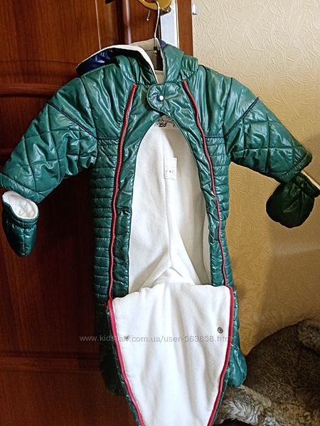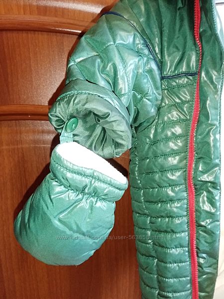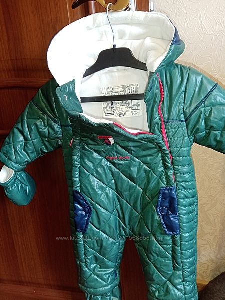 Крутой, тёплый, стёганный комбинезон Minibanda - унисекс, отличного качества, в идеальном состоянии. Капюшон, пинетки, варежки отстёгиваются.Подойдёт до t = -3 ˚ C
