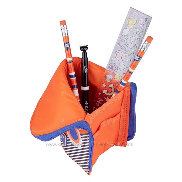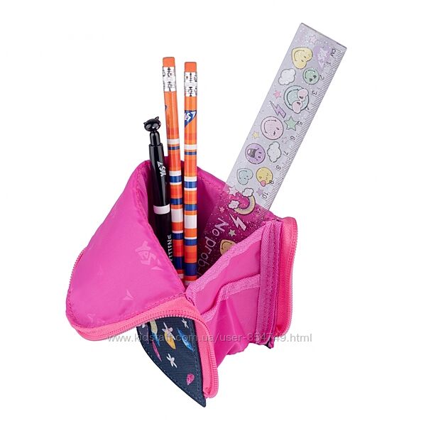Пенал имеет три положения: пенал и настольный стакан двух типов. Устойчивое основание позволяет использовать пенал в качестве стакана для письменных принадлежностей, высота стенок которого может регулироваться с помощью загиба верхней части пенала.Характеристики: