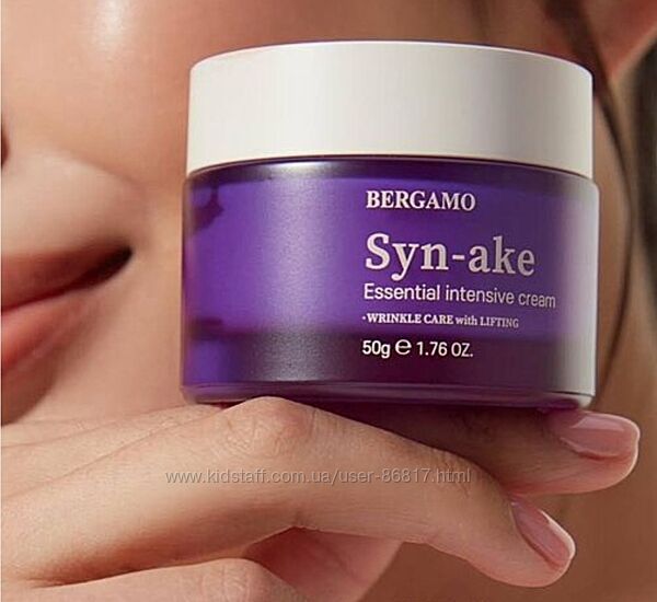 BERGAMO Syn-ake Essential Intensive Cream — крем із синтетичним пептидом Syn-ake, дія якого подібно до зміїної отрути гадюки.