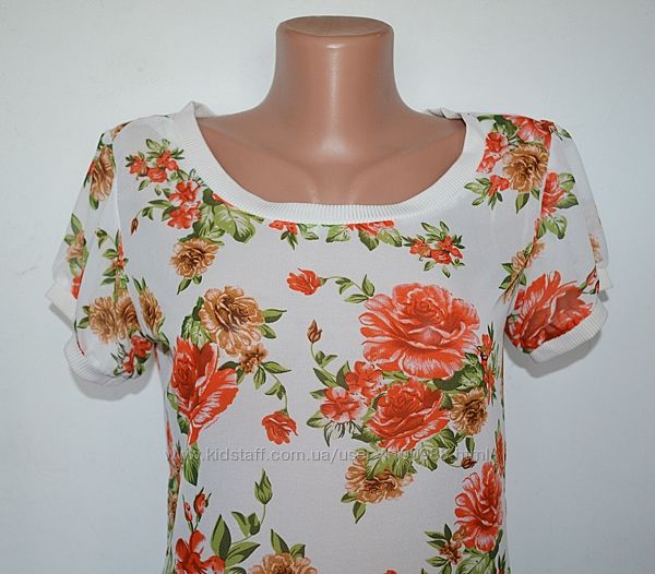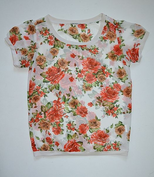 Подробное описание: Шифоновая футболка, топ, блуза в цветочный принт Terranova