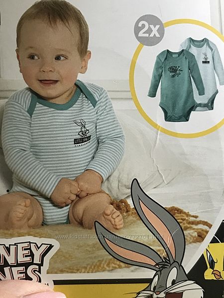 2 шт. Отличные боди мальчику Looney Tunes. 62-68