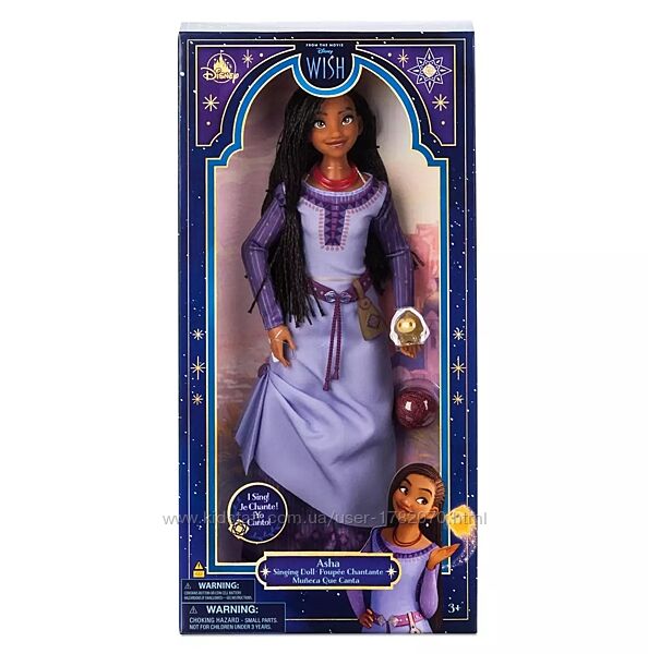Аша, головна героїня мультфільму студії Disney Animation «Бажання». Аша відтворена в цій ляльці дуже деталізовано: з укладеним волоссям, багатошаровим вбранням і крихітною Зірочкою-супутницею.Натисніть кнопку на спині Аші, щоб почути, як вона співає This Wish (оригінальним голосом персонажа англійською мовою).