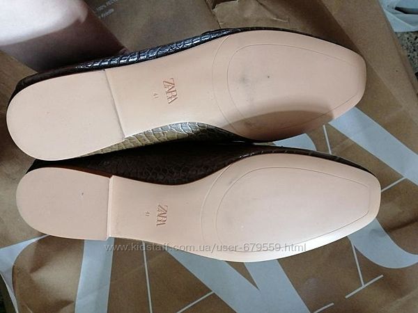 Новые лёгкие туфли zara, кожзам под рептилию, смягченная стелька, для широкой стопы, большие пальцы не давят сверху. . 38 для широкой стопы 24,5 см. Замеры самих стелек могу дать, но они не отображают реальности, носок немного вытянуть, туда стопа не проходит. На подошве следы примерок. 41 проданыДругие объявления продавца