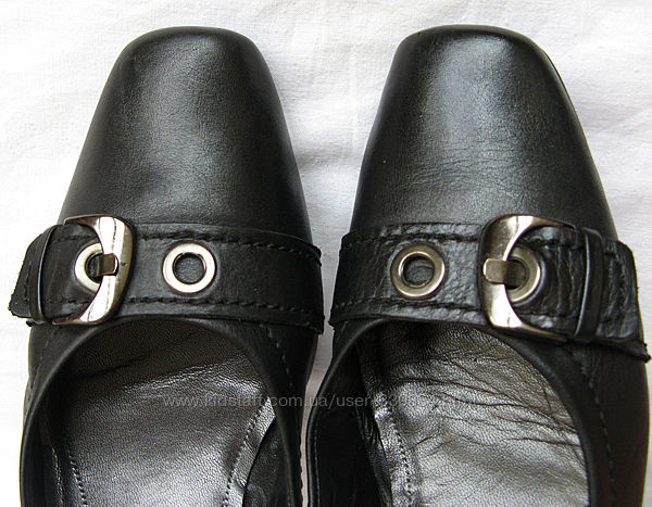 Материал верха - натуральная кожа черного цвета, мягкая и эластичная, декорированы ремешком с металлической фурнитурой