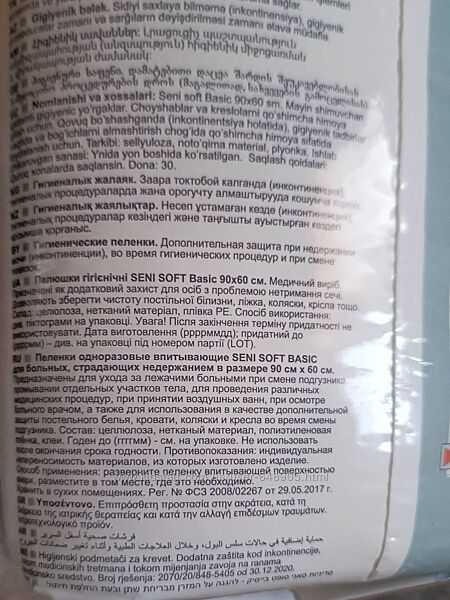Пелюшки для дорослих одноразові гігієнічні Seni Soft Basic 90х60 см 30 шт зручні у використанні при зміні підгузника і проведенні гігієнічних процедур.Верхній шар складається з дуже комфортного, приємного на дотик нетканого матеріалу, він дбайливо стикається зі шкірою, не викликаючи подразнень. Нижній шар складається з водонепроникної плівки, яка захищає від протікання і не дозволяє пелюшці переміщатися і ковзати по поверхні.
