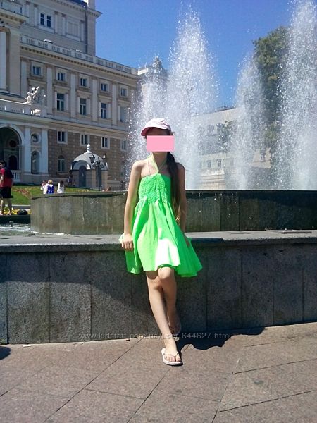 Завязки идут от середины груди и завязываются за шеей. Врех сарафана-на резиночках. Ткань-чистый хлопок. Очень легкий и нарядный!