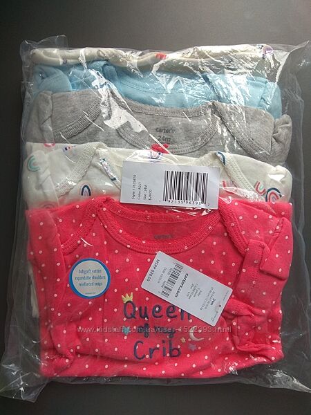 В наявності бодіки чудової якості американського бренда Carters.Набір 5 боді для дівчинки на 12 місяців (на зріст 72-76см, вага 9,3-11,1кг згідно розмірної таблиці виробника), 24м (зріст 81-86см, вага 12,5-13,6кг).