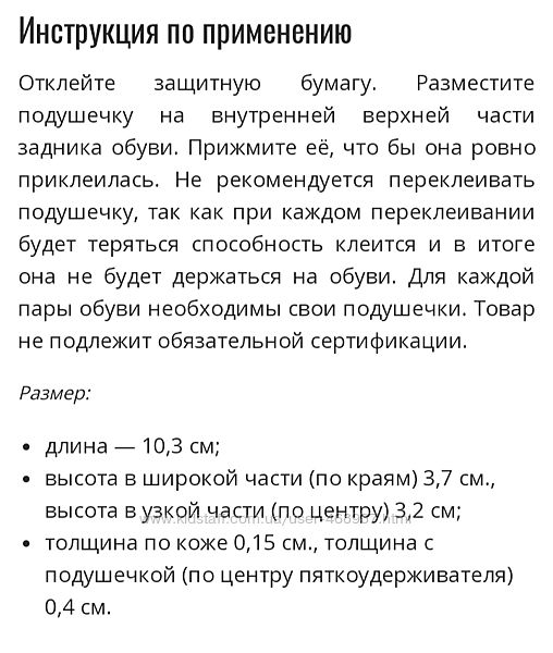 | Тип | Подушечки в обувь |
