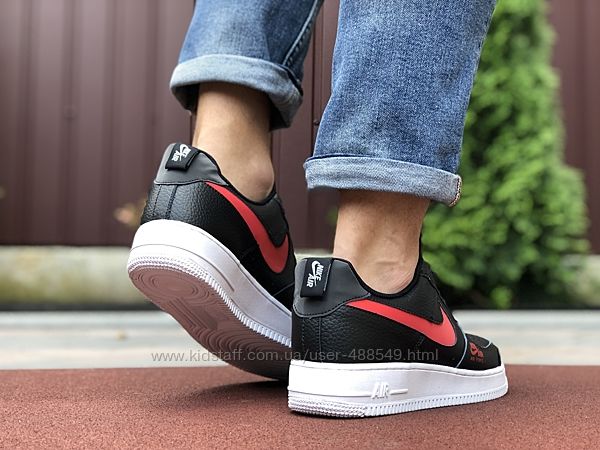 Кроссовки мужские Nike Air Force 1, черные с красным