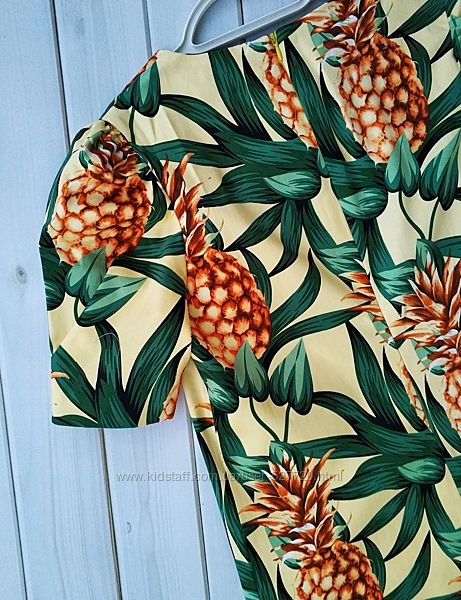 Красивое летнее женское платье "Флора" желтого цвета в экзотический принт ананасы от украинского производителя качественной женской одежды O`Zona Milano.Ткань: стрейч коттон .