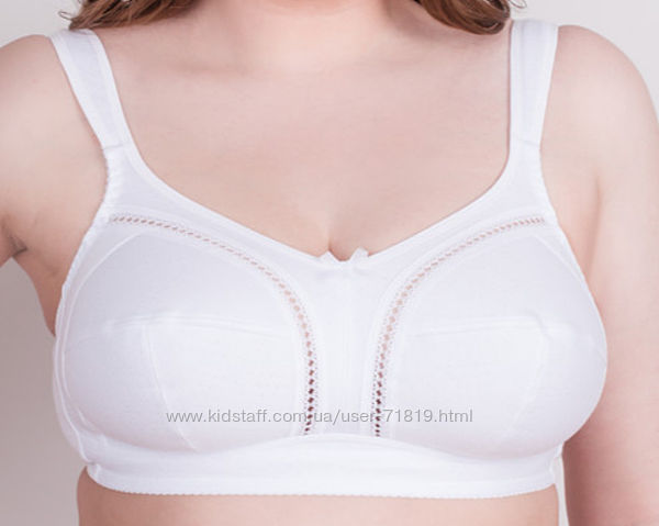 Бюстгальтер из эластичного трикотажного хлопкового полотна, трикотажного хлопкового полотна и ламинированного полотна. Мягкая чашка. Без каркасов. Расширенная бретель. Отделка - тесьма с эффектом "мережки" и бантик на центральной детали бюстгальтера.Материал : эластичное трикотажное х.б. полотно + трикотажное х.б. полотно + ламинированный материал. Наличие размеров и цветов уточняйте.