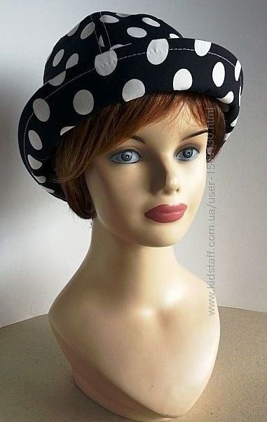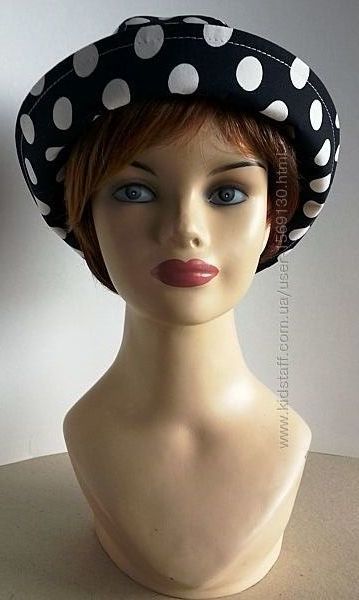 Шляпка женская. Летняя. Белые горохи на черном. Цена 240 гр.Все фото на моем сайте сделаны лично с реального товара.