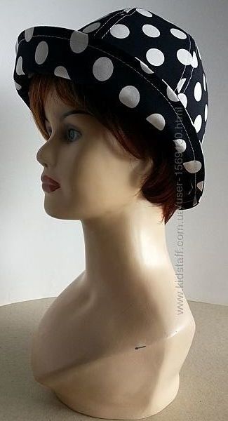 Подробное описание: Шляпка женская. Летняя. Белые горохи на черном.