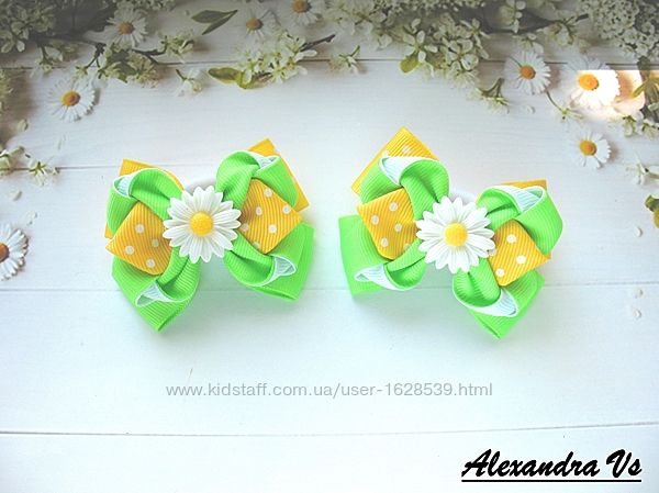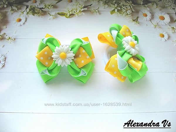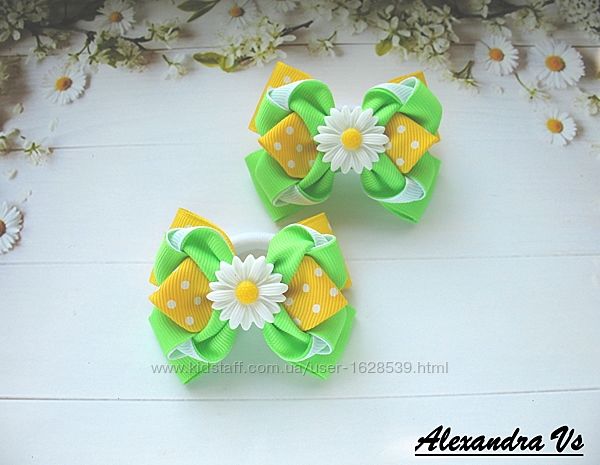 Яркие и аккуратненькие бантики для волос из репсовой ленты. Бантики закреплены на основу в виде бесшовной резиночки из нейлона . Длина бантика 7,5 см. Цена 70 грн за пару. В наличии.