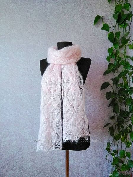 Подробное описание: Світло-рожевий палантин, шарф из кідмохеру та шовку