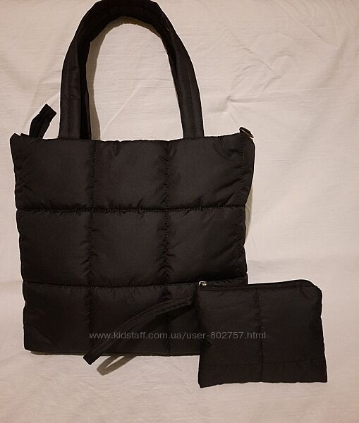 Подробное описание: Сумка дутик жіноча тканинна стьобана на синтепоні чорна з гаманцем легка
