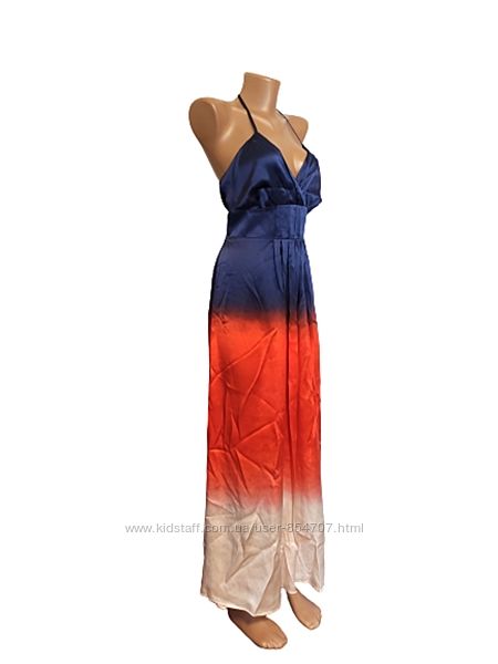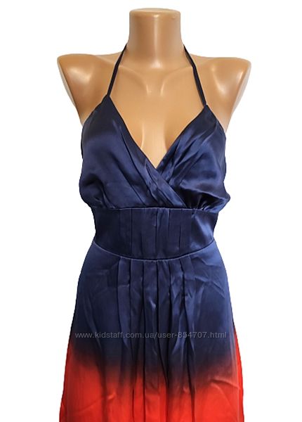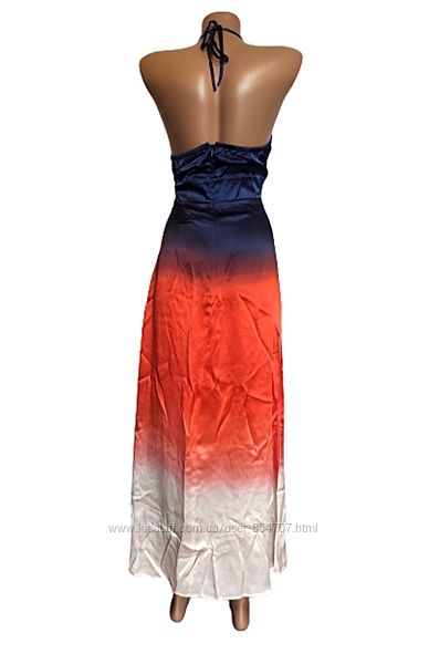 Сарафан шелковый макси New Look (Размер 46, M, UK12, EU40)Модель Louisa Dipdye Maxi. Основной цвет синий, с эффектом деграде, переходящий в коралловый и затем в нежно-розовый. Роскошный, лёгкий, из натурального шелка. С открытой спиной, красиво подчеркивает лиф и расширен к низу. По спинке застёжка молния.