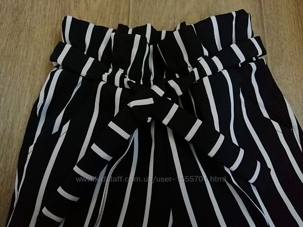 Стильные брючки в полоску, есть 2 кармана, в поясе резинка, над резинкой небольшой рюшик, есть поясок. Ткань: качественная костюмка, приятная к телу. Сезон: теплая осень-весна.