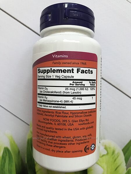 Этот продукт NOW® сочетает в себе два питательных вещества, роль которых в поддержании здоровья костей, зубов и сердечно-сосудистой системы тщательно исследовалась. Витамин D3 способствует транспортировке и усвоению кальция в организме. Недавние исследования показывают, что витамин D3 может играть важную роль в действии инсулина и метаболизме глюкозы, а также способствует укреплению иммунитета. Витамин K важен для формирования здоровых и сильных костей. Роль витамина K для здоровья артерий заключается в том, что он способствует нормальному обмену кальция в сосудистых структурах. Витамин K2 представляет собой активную и биологически доступную форму витамина K.
