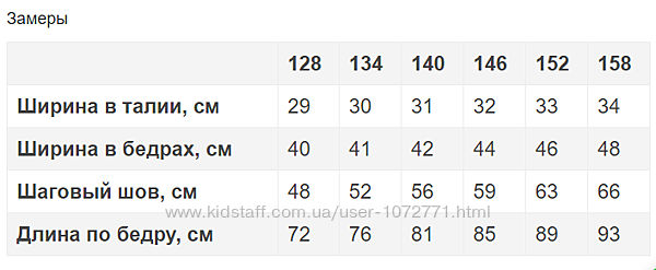| Рост | 128 см, 134 см, 152 см, 158 см |