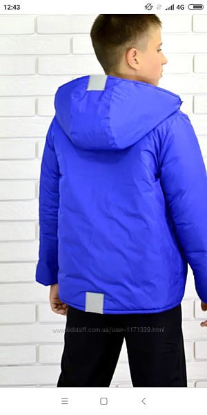 Новая куртка двусторонняя демисезонная на рост 122, качественная Замеры: длина рукава ― 45 см, длина куртки ― 50 см, полуобхват груди ― 42 см., ширина плеч - 31 см.Ее можно носить на две стороны. Одна из которых выполнена с плащевки "лаке" простегана с синтепоном 150 г/м и имеет карманы. Вторая сторона плащевка " канада" с стильным накатом. Обе стороны имеют по 3 светоотражающих элемента. Манжет на рукаве можно подвернуть на любую величину.