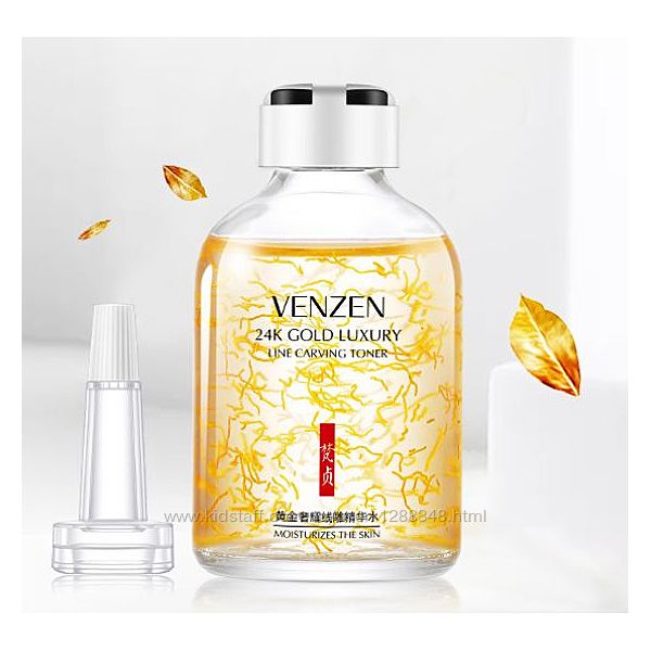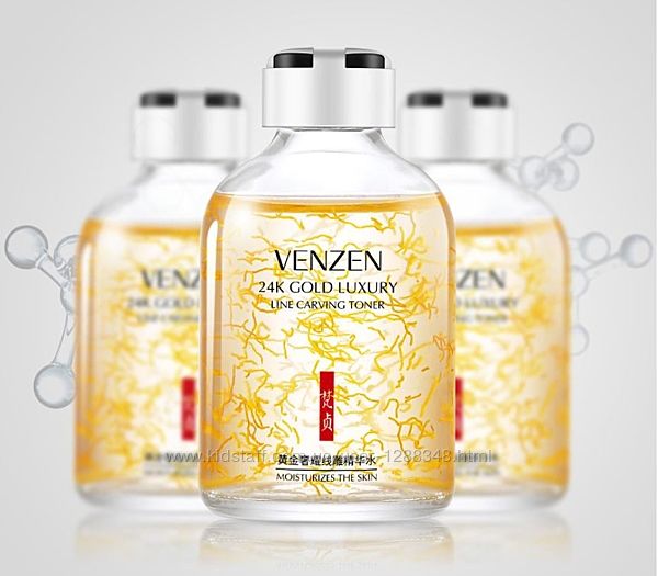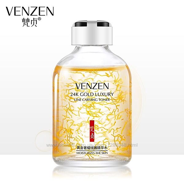 Закупка косметики в нашем магазине происходит после тщательного изучения отзывов покупателей. Поэтому весь ассортимент у нас только с отличными отзывами пользователей. Товары закупаются непосредственно у производителя, произведенные для внутреннего рынка т. е. высочайшего качества и не подразумевает никаких подделок.Тонер-сыворотка для лица VENZEN 24K Gold Luxury Line Carving Toner с золотом 24К 50 мл