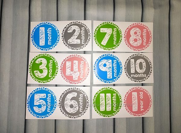 Наклейки на каждый месяц для фотосессии новорожденного.Много разных видов.