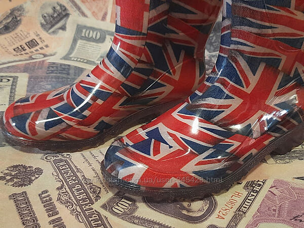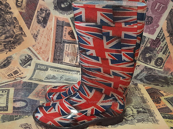 Яркие дождевые резиновые сапоги сапожки Британский флаг/Юнион Джек.Размер-34, вся стелька-21,5см.