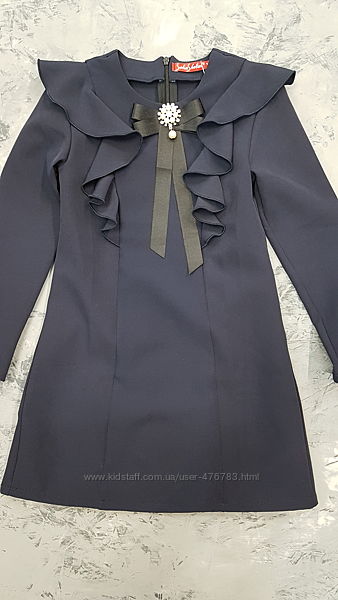 Стильна шкільна сукня для дівчаток.Спереду прикрашене брошкою. Ззаду застібається на блискавку.