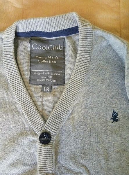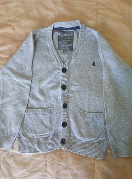 Фото 2-3: сірий джемпер фірми cool club, хлопок, 116 розмір, гарний стан. Ціна 60грн. Заміри: плечі-27, рукав зовн./внутр.-40/31,5, ширина під руками-36, довжина-41.