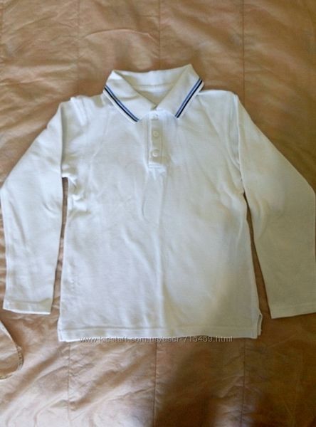 Фото 4: біле поло з довгим рукавом, гарний стан без нюансів, не пожовтілий, хлопок. Ціна 50грн. Заміри: плечі-29, рукав зовн./внутр.-40,5/34, ширина під руками-33, довжина 43.