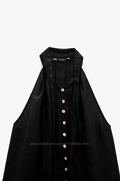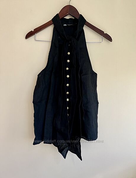 Чорний лляний топ із зав´язкою zara черный льняной топ с завязкой