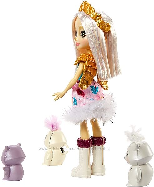 Набор Enchantimals Семья полярных сов Snowy Owl FamilyИгровой набор с куклой Enchantimals и семья полярных сов Snowy Owl Family от Mattel – это новые очаровательные, семейные наборы, отличаются от обычных Энчантималс большим количеством фигурок питомцев в наборах. Мы получаем целое семейство животных и куклу. Сразу три совы, причем фигурки разных оттенков, как и в случае с полярными мишками. У куклы здесь – просто потрясающие золотые крылья (и такое же золотое украшение в волосах). Юбка с белой меховой оторочкой и высокие красивые сапожки.