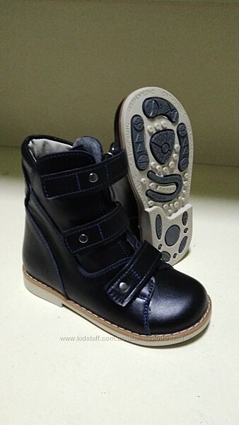 Ортопедичні черевики демі з високим жорстким задником.Таке ортопедичне взуття підходить для діток з повздовжньою або поперечною плоскостопістю, плоско-вальгусною деформацією стоп, а також Х-подібною деформацією ніжок.