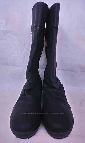 Подробное описание: Сапоги р.36 невысокие черные без застежек низкая танкетка демисезон