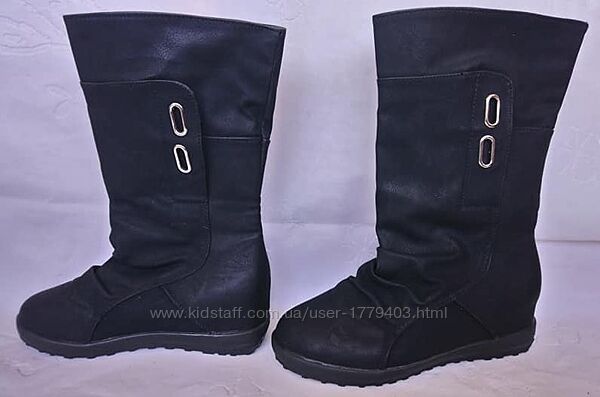 Демисезонные невысокие сапоги, р.36, цвет черный, очень мягкая эко-кожа, не царапается. Невысокая внутренняя танкетка, застежек нет.Внутренний материал – теплый текстиль.
