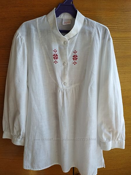 Нарядная белая льняная блузка - туника с небольшой вышивкой на девочку 8-10 лет в идеальном состоянии. Размер на этикетке 36.Отлично подойдёт для школы.
