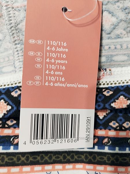 Симпатичные хлопковые капри на девочку с орнаментом - ткань очень приятная на ощупь, хорошо тянется. В наличии на рост 98/104см 2-4года.Замеры: на 98/104см- ПО по резинке 24.5см, ПО бедер 26.5см, длина 38см.
