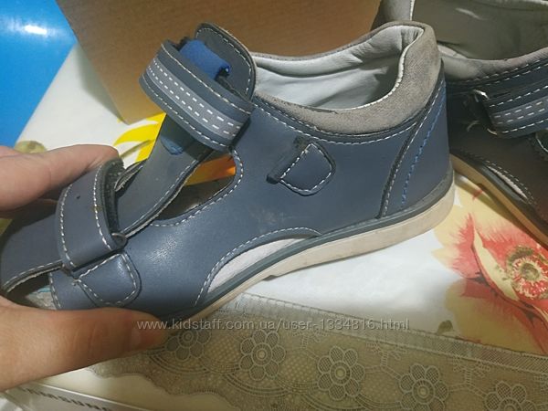 Продам босоножки на мальчика фирмы Случ 30 размер. Очень хорошее состояние. Есть ньюанс, на правом босоножке отсутствует металлический зажим. На фото видно.Стелька 17 см, от края до края 18,5 см.