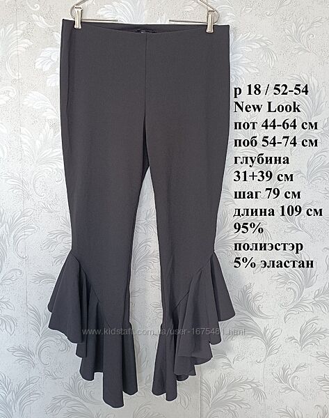 р 18 / 52-54 Роскошны черные штаны брюки с воланами стрейчевые большие батал New Look* Замеры в ровном виде и максимально потянув указаны на фото.