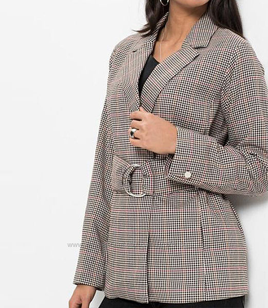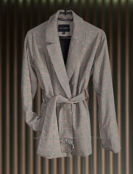 Подробное описание: Пиджак в клетку под пояс, на запах, жакет